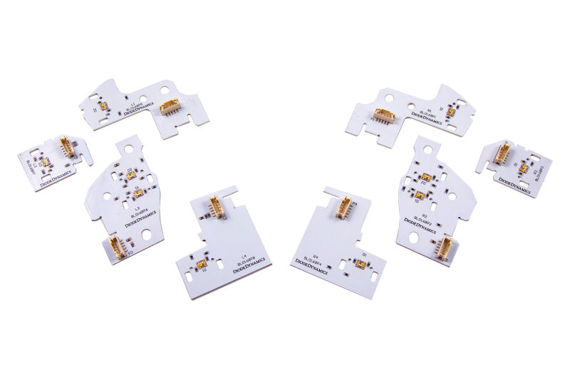 Features Adds RGBW multicolor functionality to DRLs. Compatible with 2019-2024 Ram 1500 Laramie Rebel and Big Horn with LED package. Two high-power LEDs in place of each original white chip. Constant-current high-power driver modules. CAD-designed for perfect fitment. Engineered and assembled in USA. Overview OEM Style Multicolor Function. This kit is compatible with Ram 1500 2019-2024 Laramie Rebel and Big Horn with the LED package. These trim levels have LED accents in the headlight from the factory that illuminate in a white color for the daytime running light. With Diode Dynamics replacement LED boards you can add full multicolor functionality to the daytime running light for a custom yet functional look! RGBW. This product is not just RGB it is RGBW! That means there is an extra LED chip that is specifically white in color right next to the standard red green and blue LEDs. By using the included Bluetooth RGBW controller you can activate and control the white chip independently of the colors. This provides a much more uniform pure and bright white color for everyday driving. What's Included? Two (2) sets of LED boards left and right Two (2) waterproof drivers One (1) RGBW Extension wire One (1) SolidState Relay Harness One (1) Battery Input Wire Four (4) T-taps One (1) RGBW Bluetooth Controller Installation guide